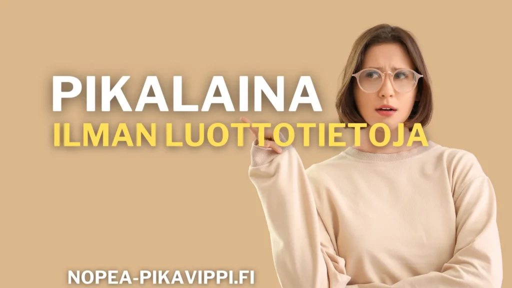 Ensimmäinen tärkeä huomio: Suomessa lainanmyöntäjät tarkistavat luottotiedot lähes aina. Täysin luottotietovapaata lainaa ei käytännössä ole, mutta pikalaina luottotiedottomalle on silti mahdollinen joissain tilanteissa.
