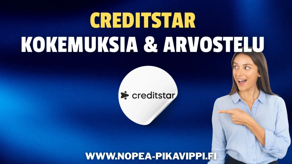 CreditStar on suomalaisille suunnattu digitaalinen kulutusluottopalvelu, joka tarjoaa joustavia luottoja pieniin ja keskisuuriin tarpeisiin — minä pidän palvelusta sen selkeyden, nopeuden ja läpinäkyvyyden vuoksi.